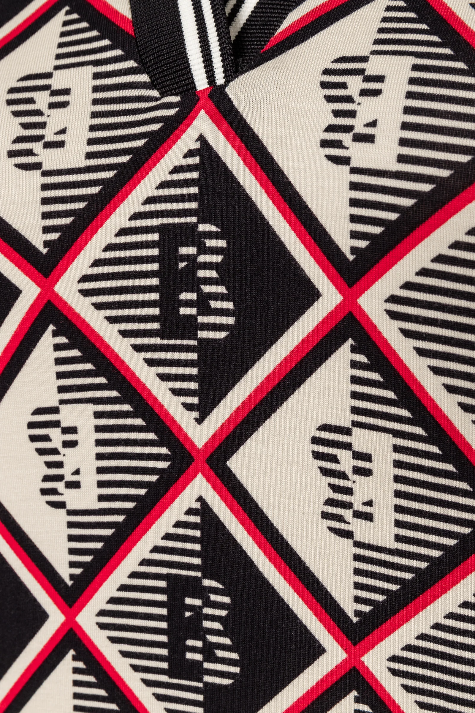 Collar and neckline: Combines a classic ribbed polo collar with a plunging V-neck.