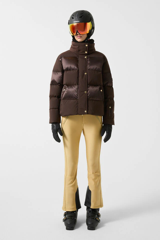 The BOGNER Naja Down Ski Jacket is a premium piece of outerwear combining luxury fashion with high-performance functionality for the slopes. The design features quilted goose down and feather padding for warmth, along with a waterproof, breathable, and permanently water-repellent finish for winter weather.