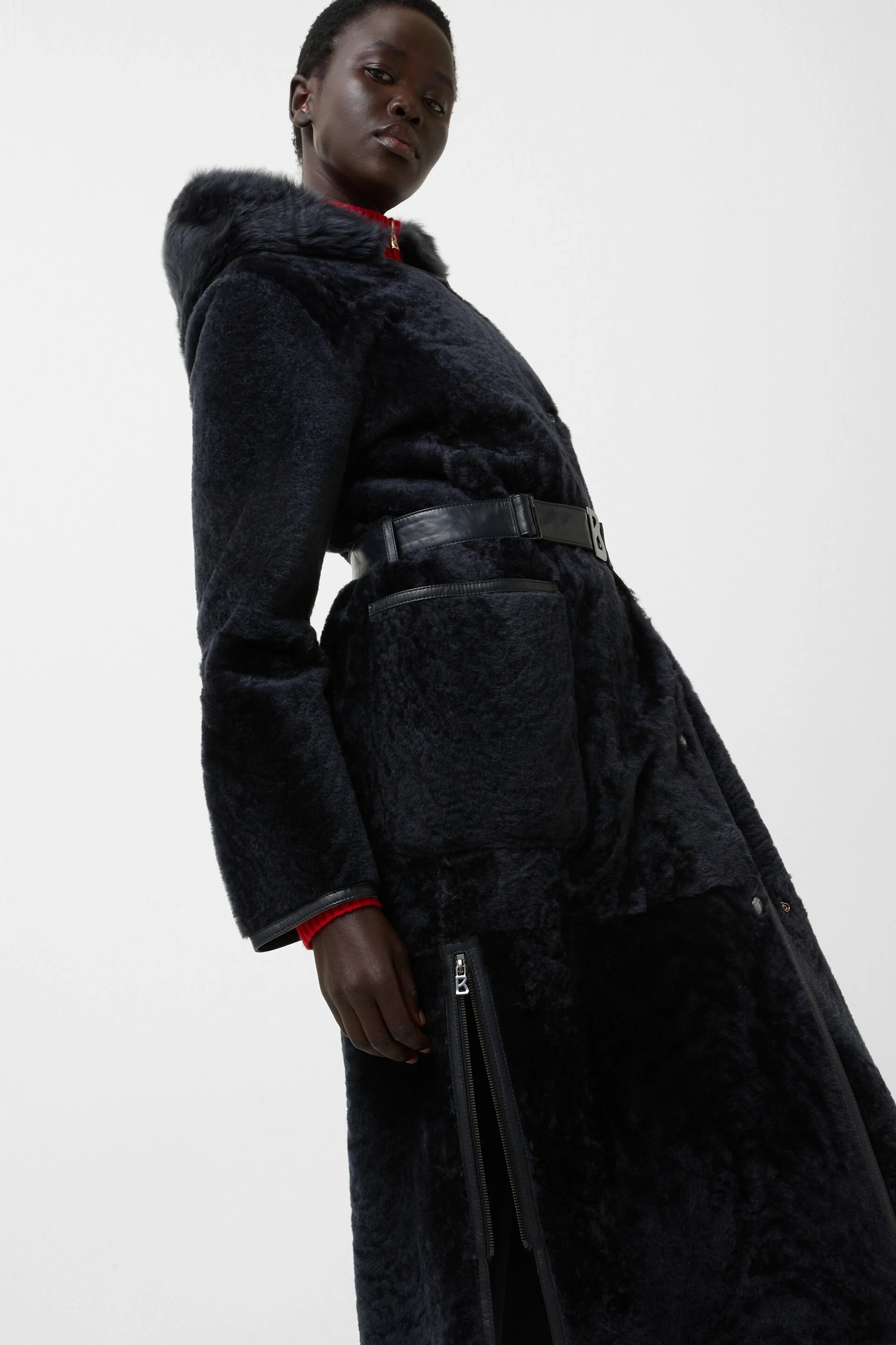 The Peyton coat made from pure lambskin with a detachable hood is an impressive highlight piece. The design is emphasised by logo press studs and the nappa leather belt, complemented by patch pockets. The hem with side zips provides a comfortable finish.