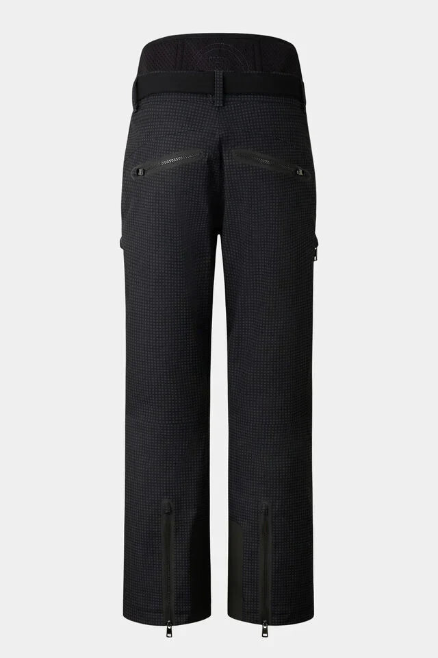 Trouser ankles finished with edge protection, a zip at the back and internal snow guard
