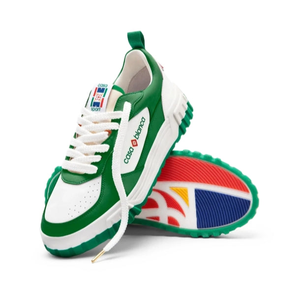 The design language of the Court Sneaker reflects the iconic silhouettes of the 90s. The colours featured throughout the rubber sole are a combination of the refined codes of tennis and classic architecture and create a unified palette throughout the shoe, with the focus on primary colours offset by tennis whites to create a sport focus colour story.