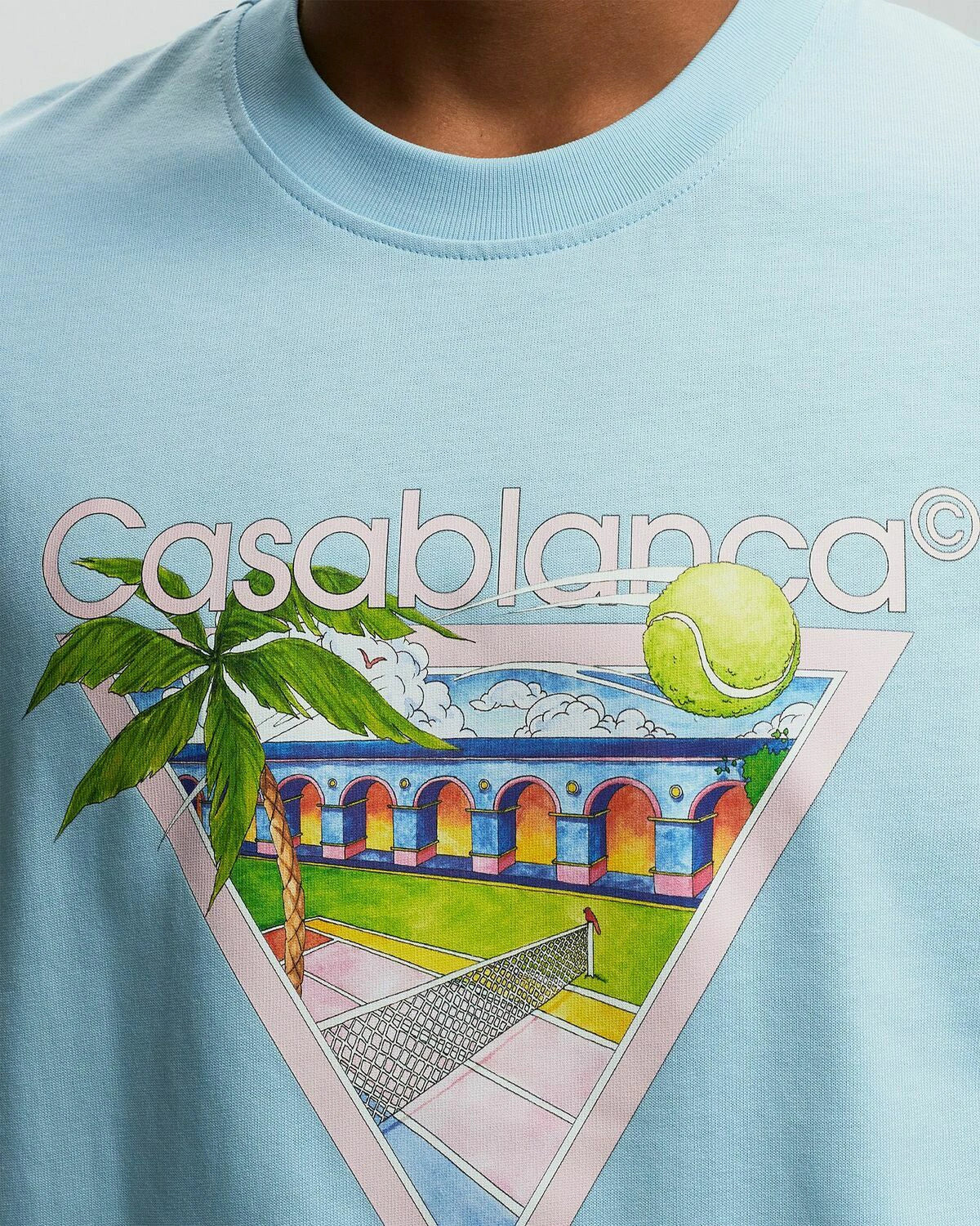 The Casablanca Paris Tennis Club Icon t-shirt is a printed design featuring the house's signature artwork reinterpreted for the season incorporating elements of tennis, nature and architecture. It’s crafted from 100% organic cotton, complete with a classic crewneck and Casablanca branded label.- Crewneck- Short sleeves- Graphic prints