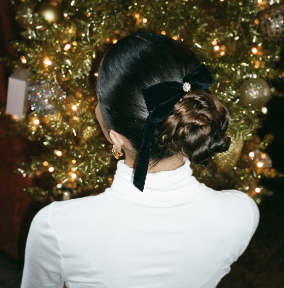 The Bow Barrette is designed to effortlessly elevate any hairstyle with its darling charm, velvet and stone adornment. Whether you're aiming for a sophisticated updo or a playful half-up style, this black velvet bow barrette is the perfect finishing touch to any outfit.