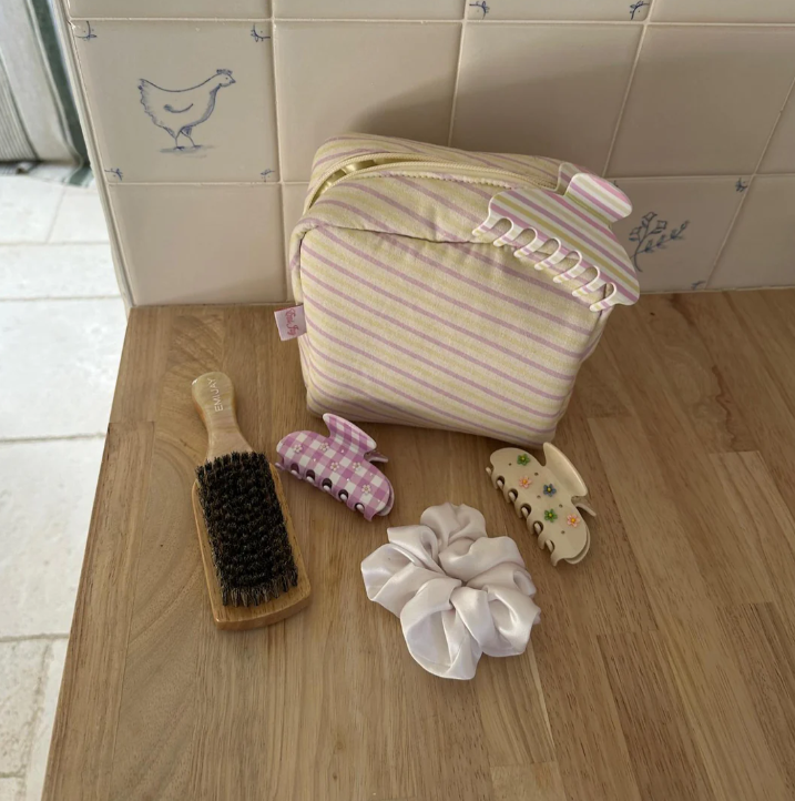 Made from a cotton-linen blend and a satin lined interior, this pouch was made to hold all of your go-to hair essentials.