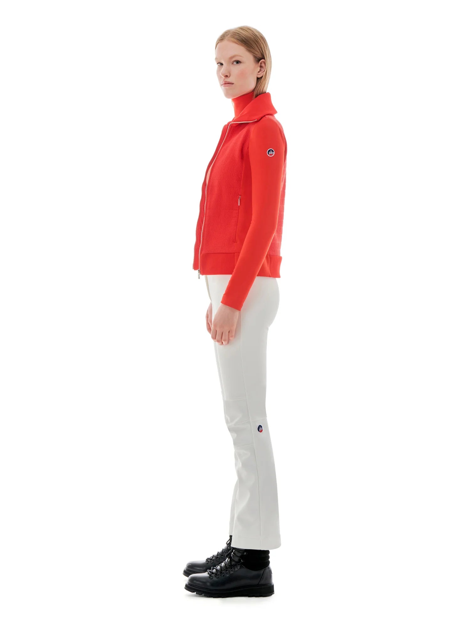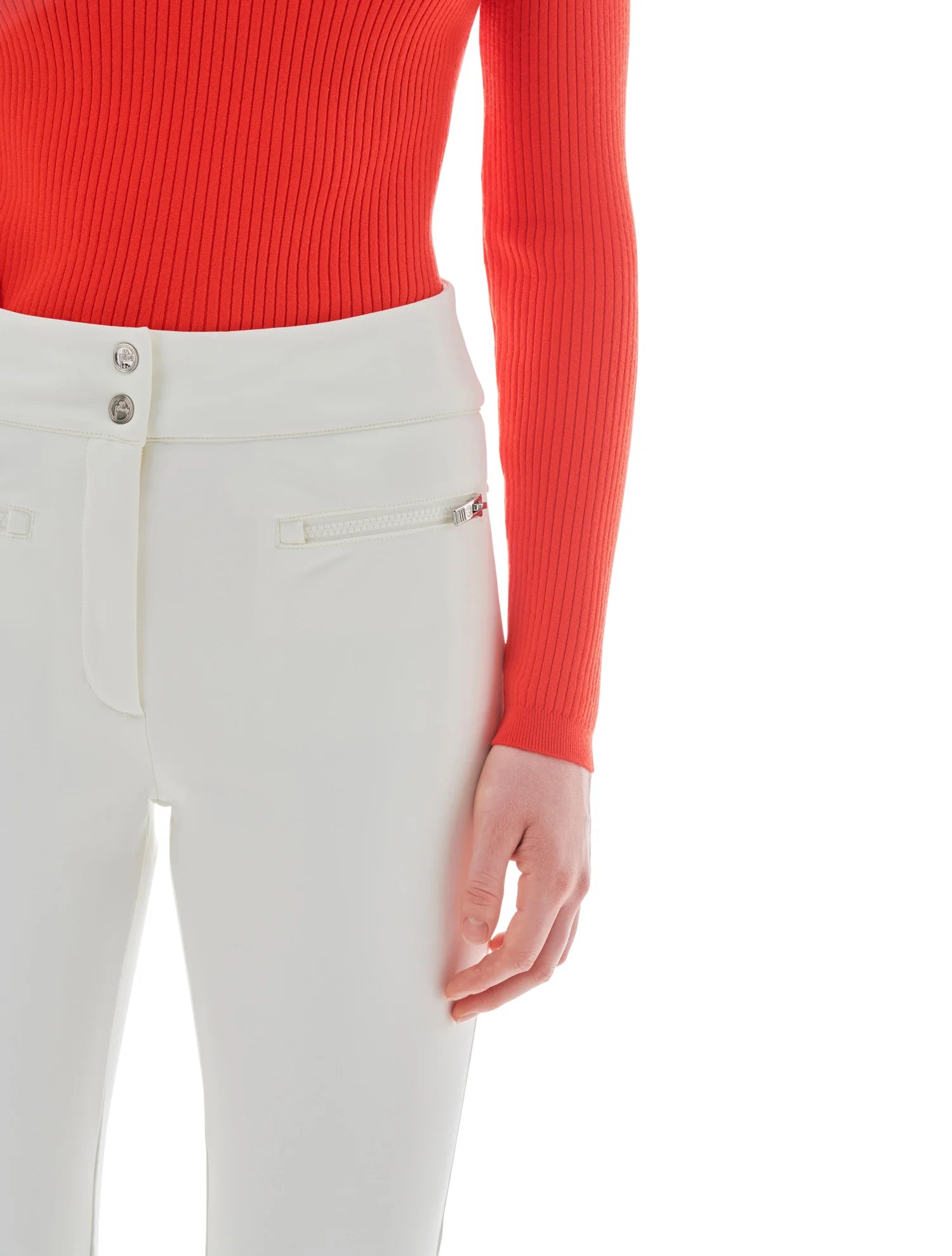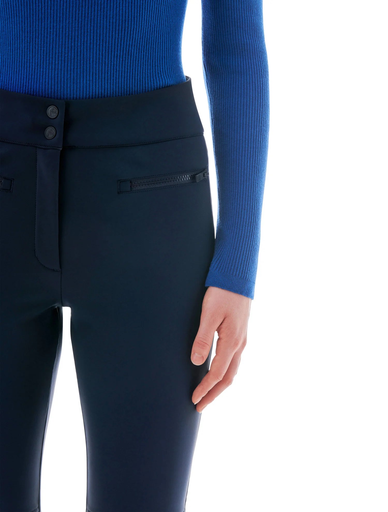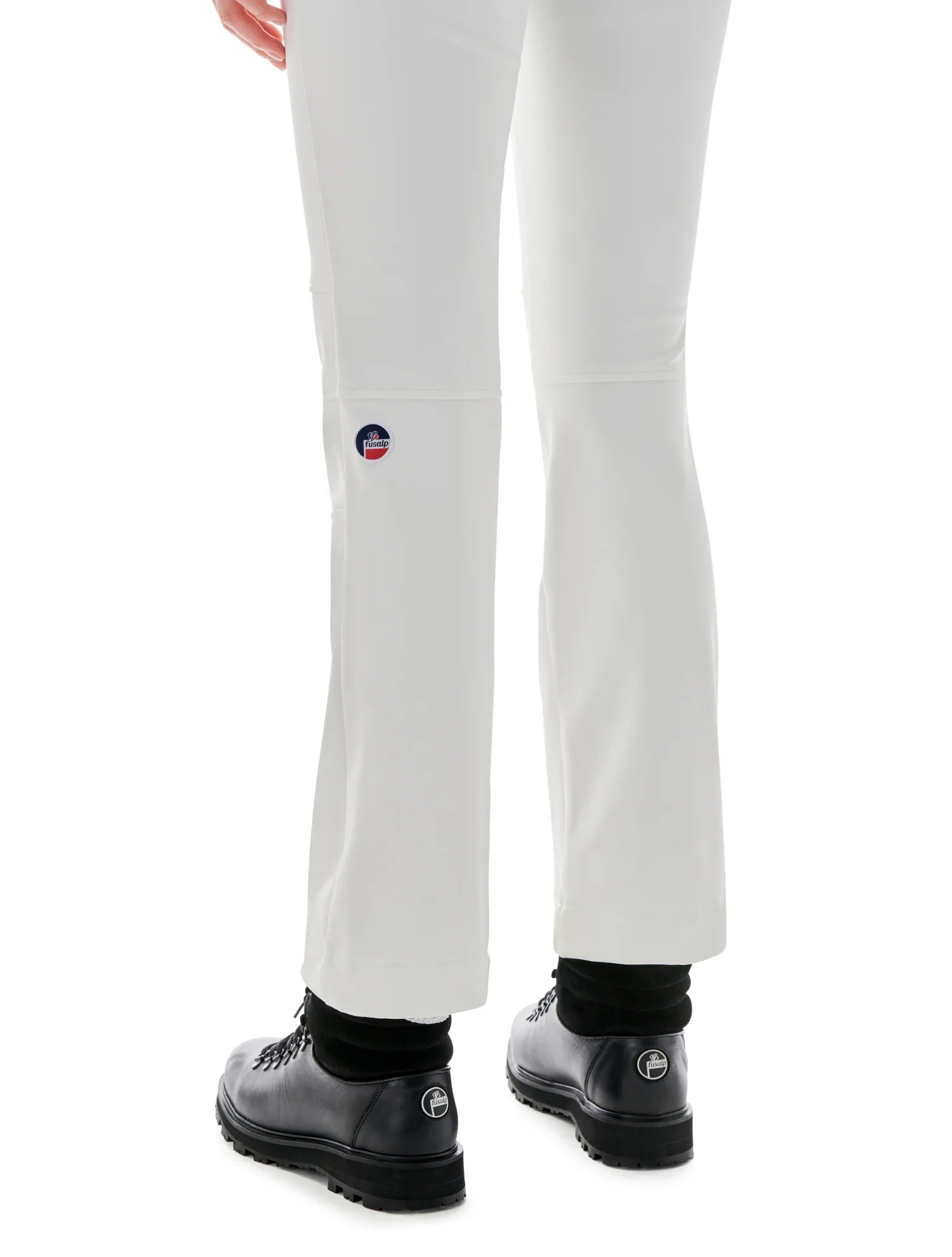DIANA ski pants feature a sport-chic style and fashionable slim fit creating a slender silhouette. DIANA is crafted from Schoeller® windproof stretch and warm bonded fleece softshell with a high-performance water-repellent and breathable membrane approved by Fusalp providing protection and lots of freedom to move. Everything has been designed for comfort: higher waistband, darted knees, hip pockets, and leg gaiters. The engineered fit and minimalistic design make the DIANA pants a must-have for the snow chic skier's wardrobe.