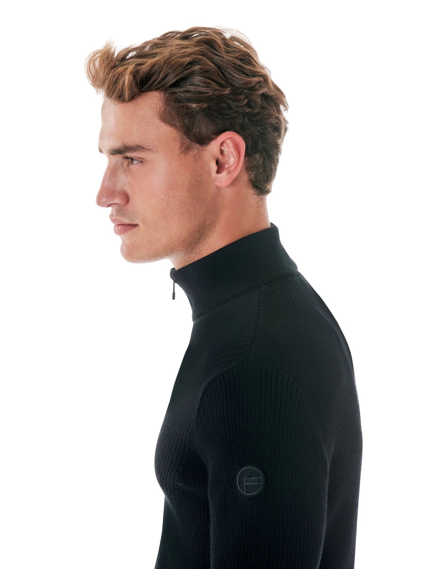 Cable knit half-zip stand-up collar pullover, NAGHY is crafted from a high-quality Italian viscose Elite EcoVero™. Warm, soft, stylish, this pullover is a staple of the masculine wardrobe.