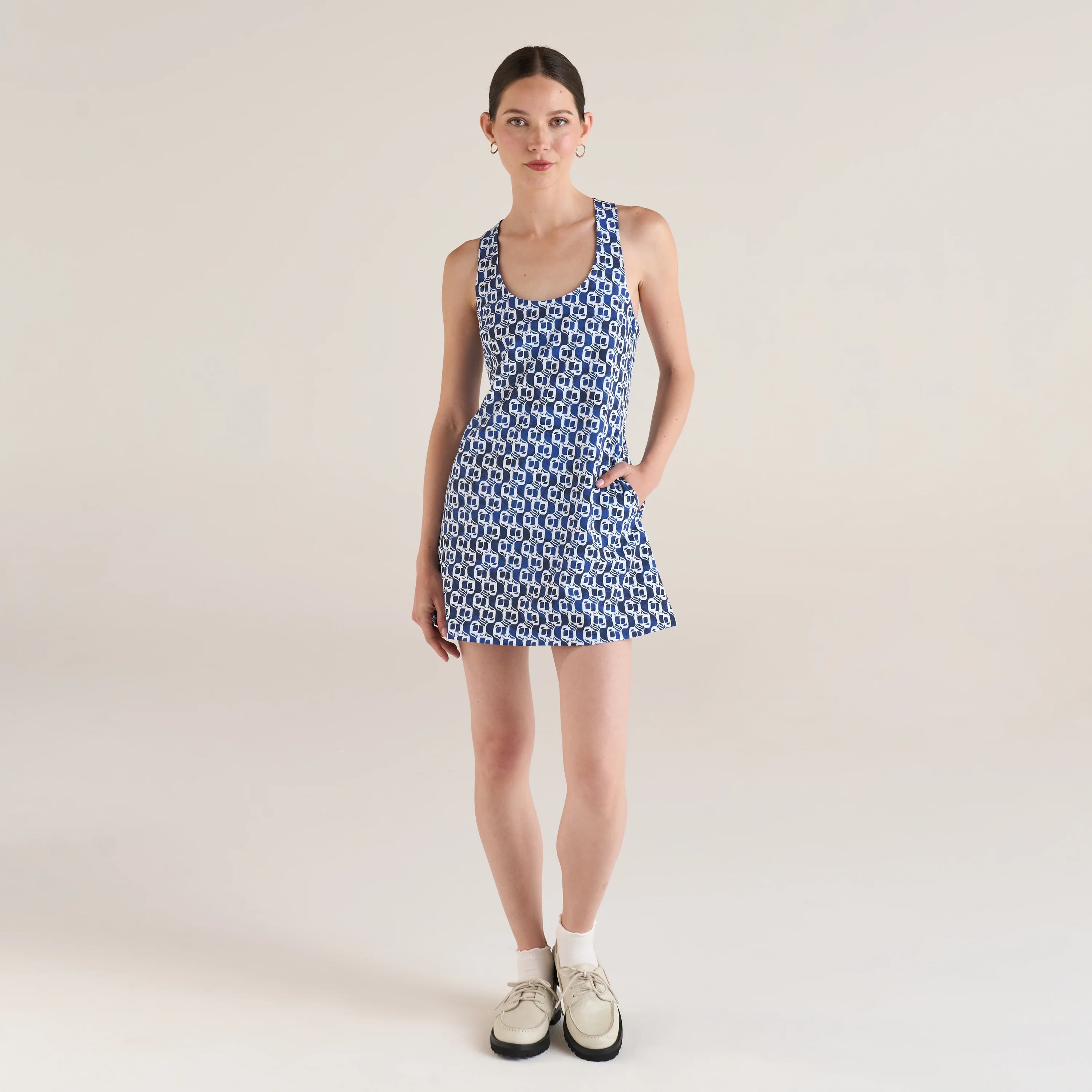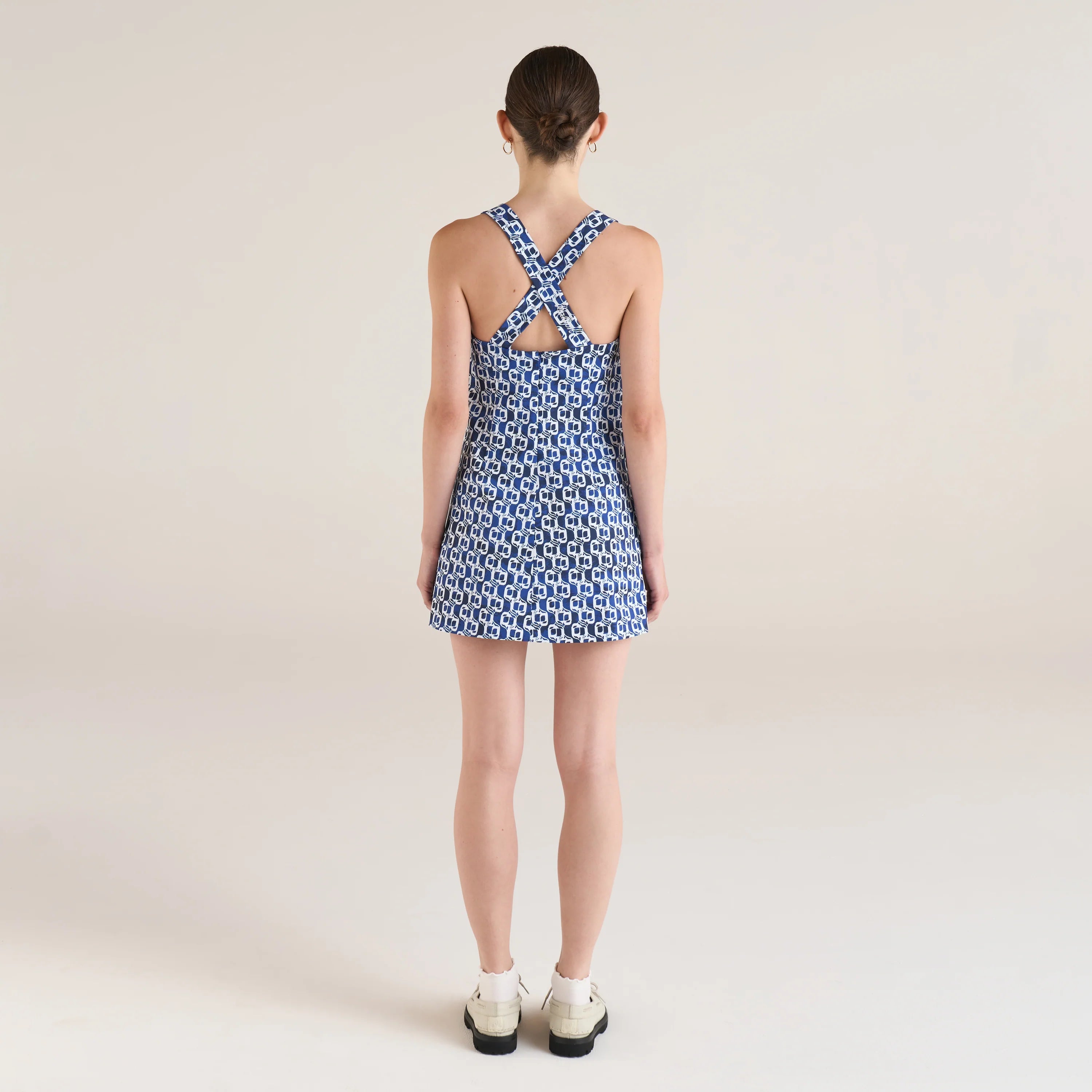 Say hello to effortless style with the Anouk Dress from Malbon Women's Spring 24 Collection - Final Delivery. Made from a comfy blend of poly and spandex, this dress features a flattering A-line bottom and a chic cross-back detail for a touch of flair. Complete with an invisible zipper closure, inside bra with elastic hem, and Malbon script logo embroidered on the back strap, it's perfect for making a statement wherever you go. Plus, with shorts included, you can stay comfortable round after round.