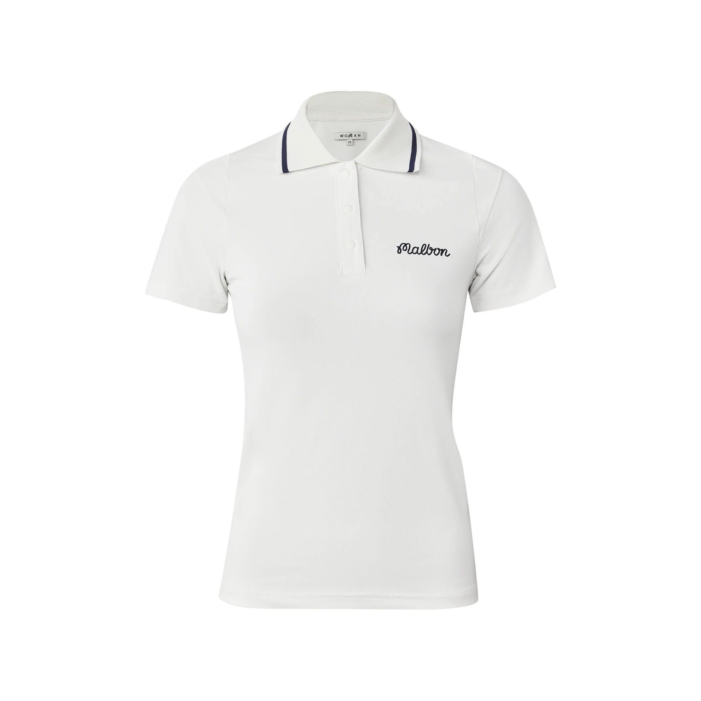 Elevate everyday style with the Paloma Women's Polo from Sun Diego Boardshops. Crafted from a blend of 95% polyester and 5% polyurethane, this lightweight polo features a classic 3-button placket and matte snap buttons for a modern twist. The knit collar showcases a jacquard line detail, while the Malbon script embroidery on the left chest adds a touch of elegance. Perfect for casual outings or sporty activities, this polo offers both comfort and chic appeal.