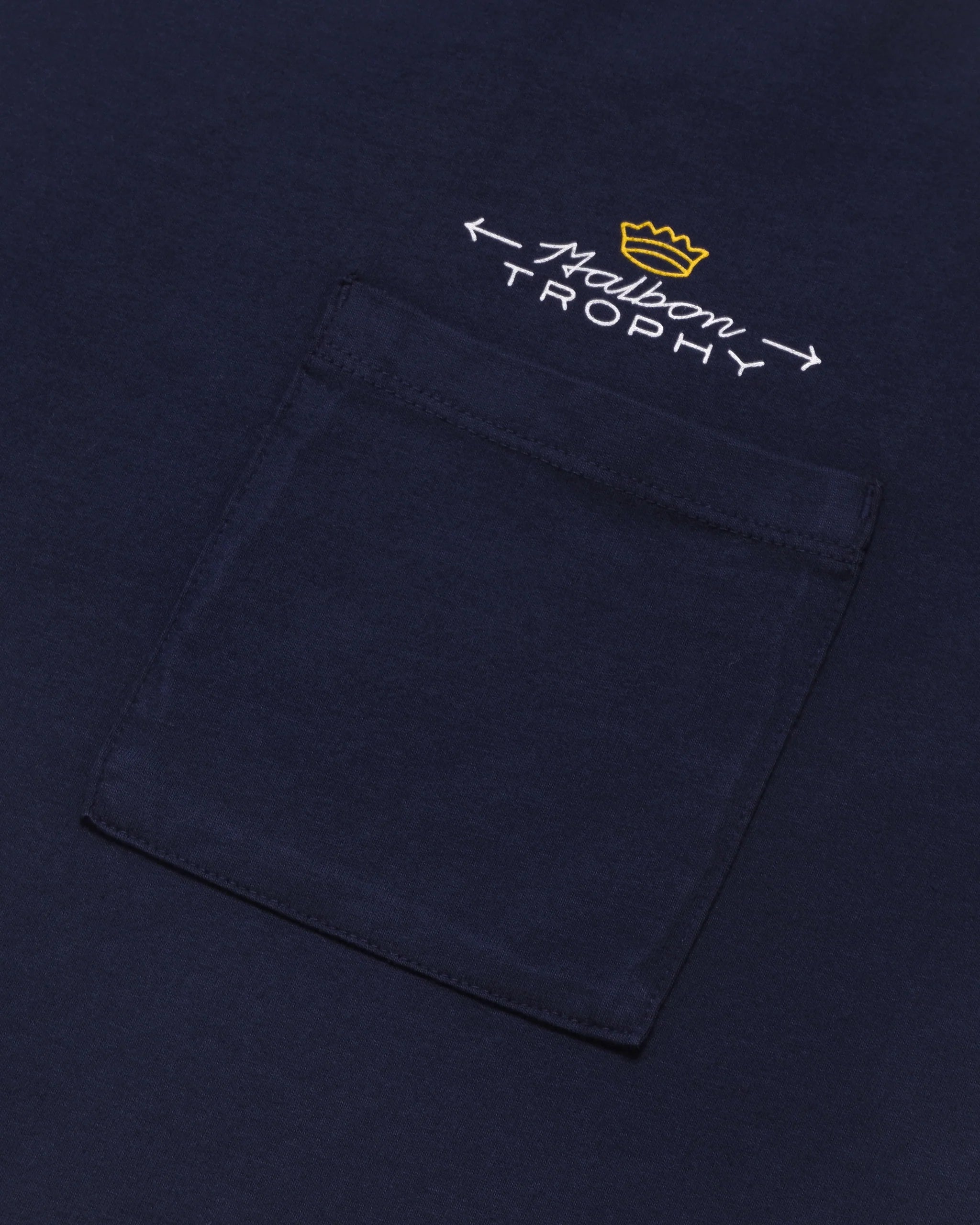 The Malbon Trophy Pocket T-Shirt is made from 100% soft cotton and features a ribbed neck for a comfortable, snug fit. A convenient pocket on the left chest is paired with the Malbon Trophy logo screenprinted just above it, adding a refined touch of branding. The back is adorned with the bold "Trophy Buckets" graphic, making a statement without being overly flashy. Finished with a woven Malbon label at the left hip seam, this t-shirt blends everyday wearability with signature Malbon style, perfect for both on and off the course.