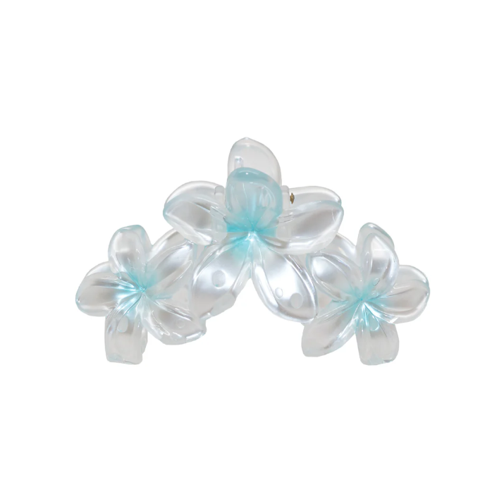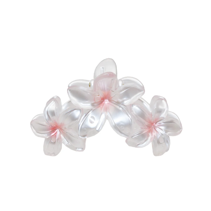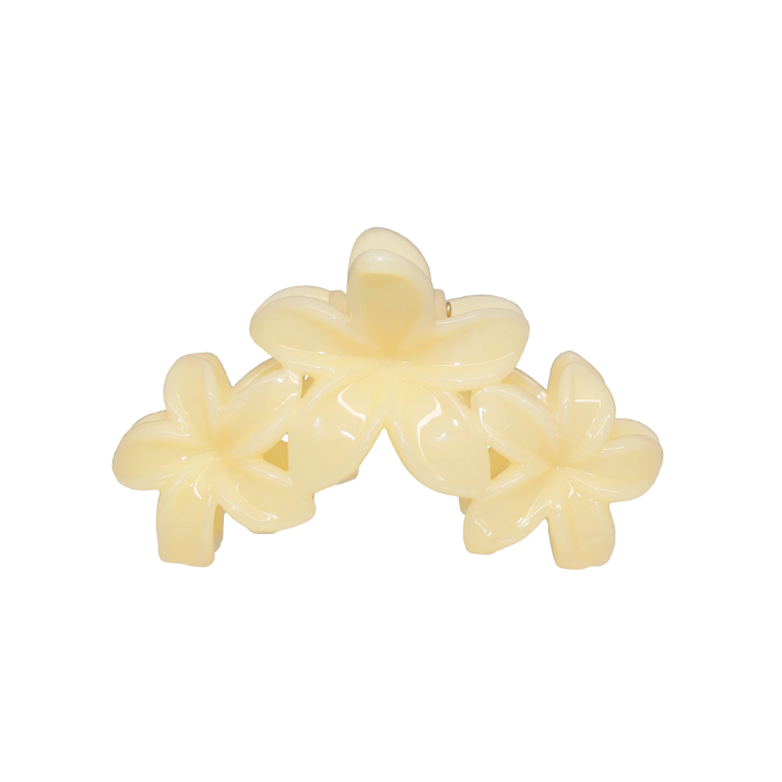 FInspired by the plumeria flower, this Super Bloom hair claw clip represents love and new beginnings. Effortless yet playful, this claw clip with 3 plumerias is large enough to hold a full head of hair, and perfect for a half-up-half-down.