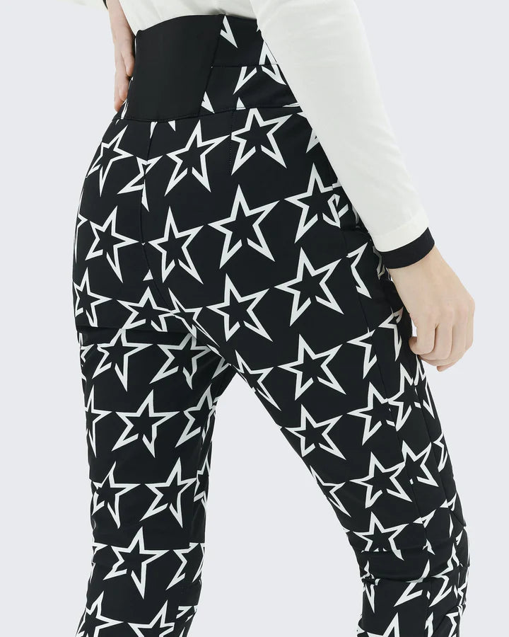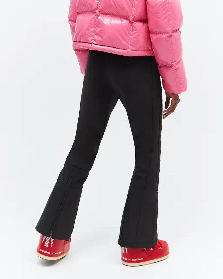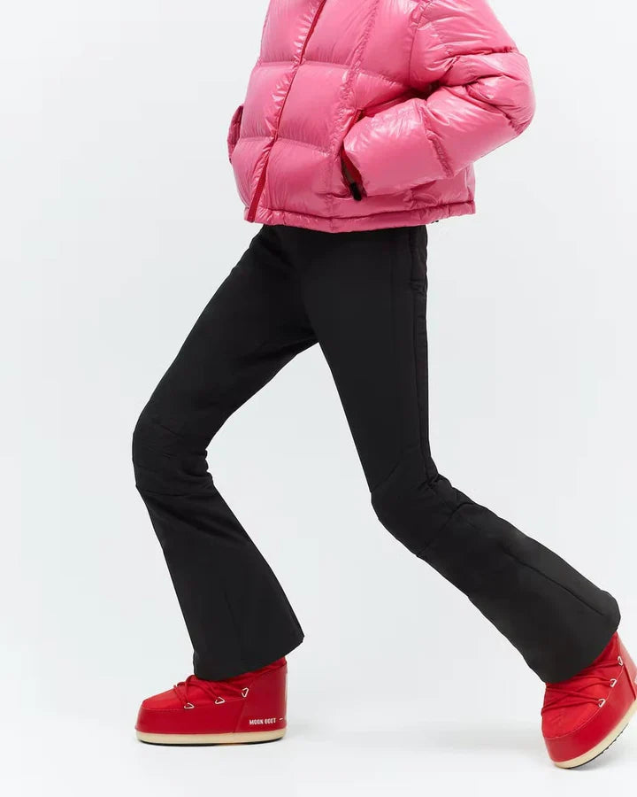 Our bestselling ski pant, the High-Waist Aurora Flare, blends a denim-inspired silhouette with peak performance. Cut to a high-rise fit that hugs the waist and flares from the knee, it delivers both streamlined style and functionality on the slopes. Crafted from Toray Dermizax™ fabric with a thermal fleece lining, it offers water resistance, warmth, breathability, and freedom of movement thanks to 4-way stretch. Practical features include snow gaiters with silicone grip, boot-friendly zipped hems, anti-tear guards, and taped seams for added durability. Style with any base layer or knit for a confident ski look.